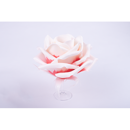 Blomst og blade - foamiran, isolon. Foamiran (fra engelsk. Foam - skum) er et dekorativt skummateriale, der bruges i forskellige typer dekorative produkter. Isolon er et varmeisolerende materiale. Den største fordel ved materialet er evnen til at ændre form, når den opvarmes, og opretholde sin form efter afkøling. I modsætning til plast er isolon eller foamiran-materiale blødt og bøjeligt. Med dens egenskaber holder den også den rigtige form, er ikke bange for fugtighed og falmer ikke. Stammen er pexrør. Foden er et trestativ.
